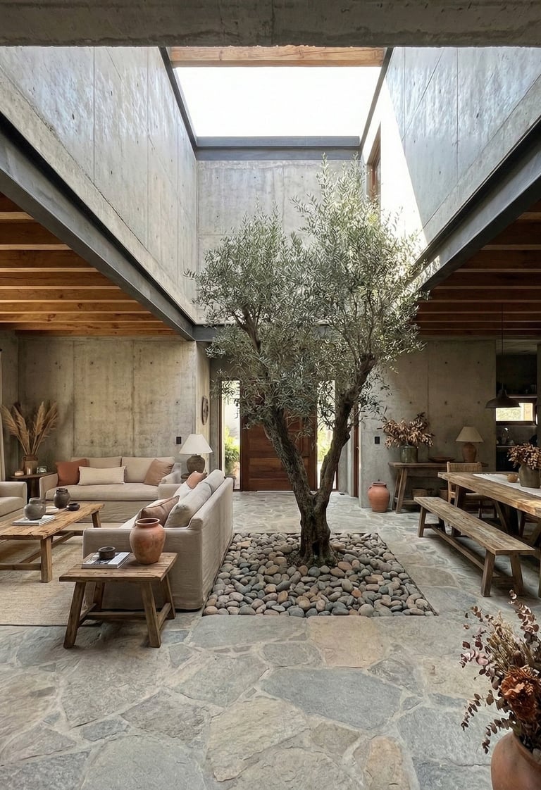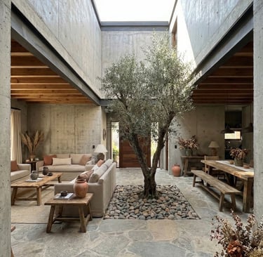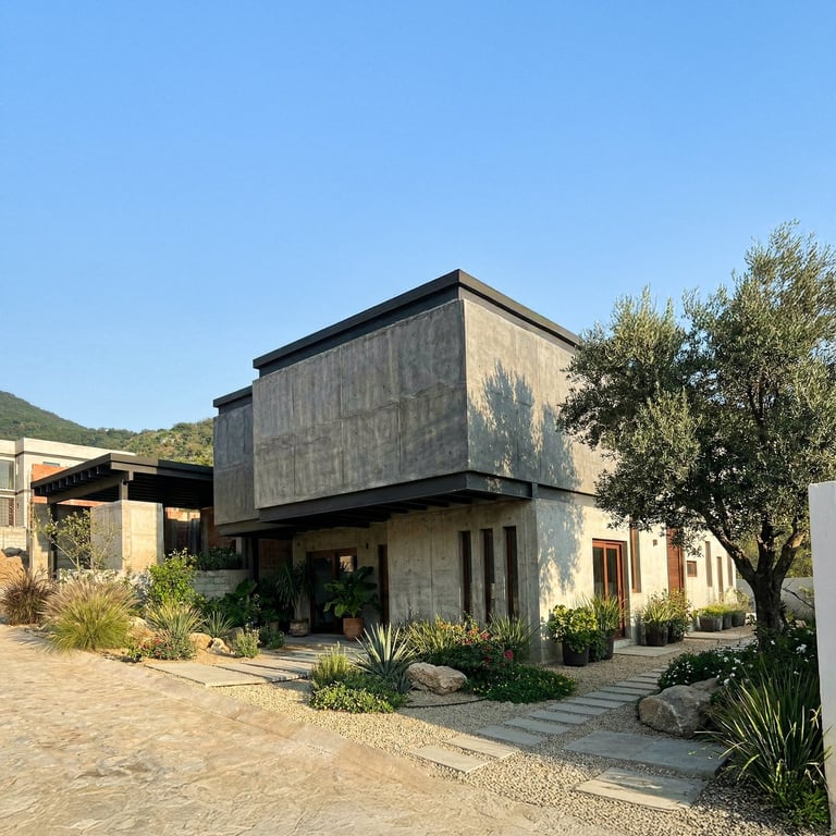 Esta residencia se define por un minimalismo brutalista de gran fuerza expresiva y una volumetría de concreto aparente que se integra al paisaje mediante una materialidad honesta. El proyecto prioriza una atmósfera de refugio introspectivo, donde el rigor del hormigón se equilibra con la calidez de la madera y la piedra natural, humanizando el habitar a través de un patio central zenital. A través de una gestión estratégica de la luz y la incorporación de vegetación endémica como eje articulador, logramos una síntesis entre la solidez arquitectónica y la serenidad espacial que define el estándar de nuestra firma.
