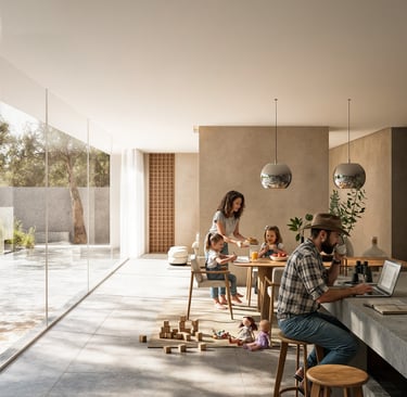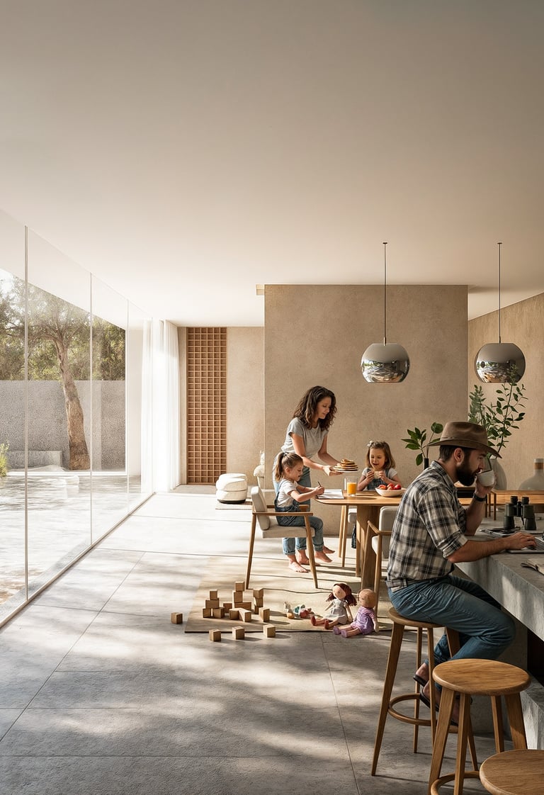 Esta residencia se distingue por una arquitectura de volúmenes sólidos y una materialidad que rinde homenaje al paisaje del norte del país. El diseño fue concebido bajo criterios bioclimáticos para garantizar el máximo confort térmico, fusionando interiores de estética minimalista con una ejecución técnica de alta eficiencia. La integración de amplios espacios sociales y una curaduría de materiales nobles logran un equilibrio perfecto entre la calidez de un hogar contemporáneo y la solidez constructiva que caracteriza a nuestra firma.